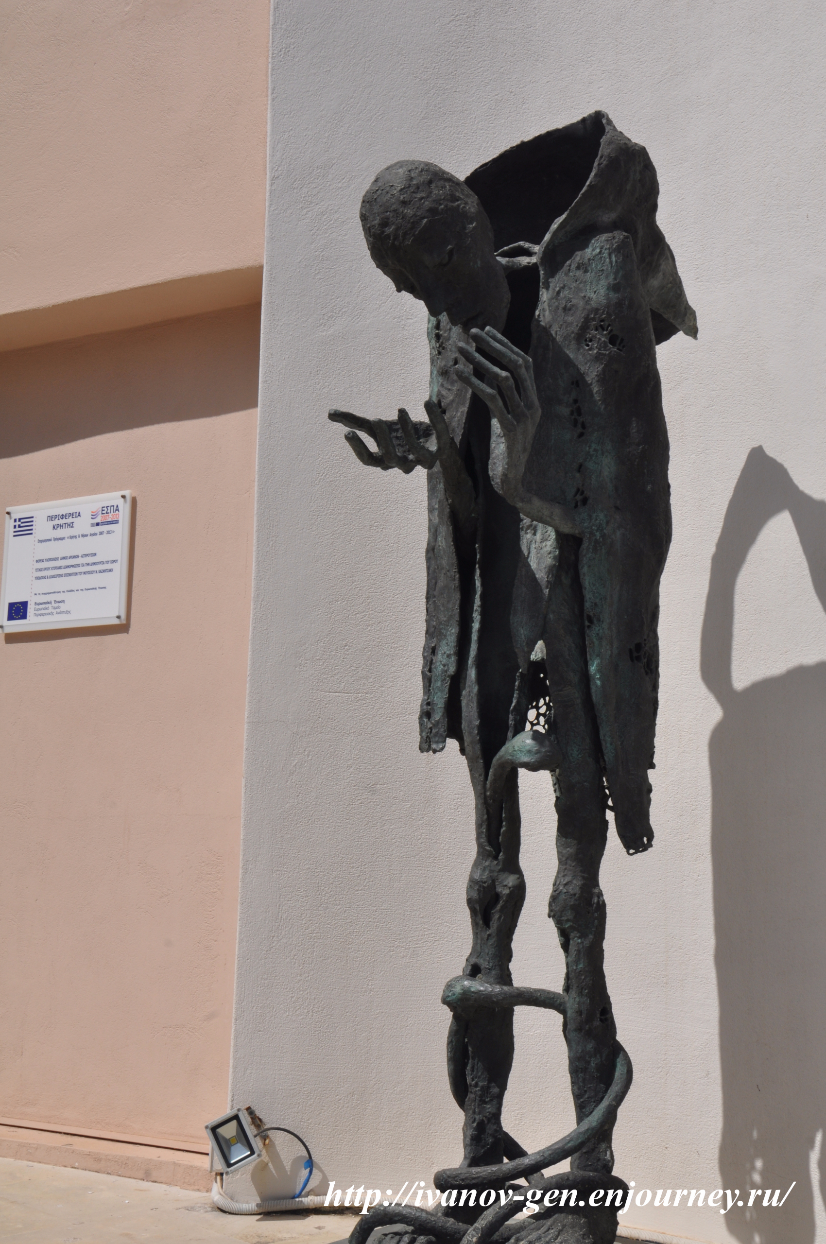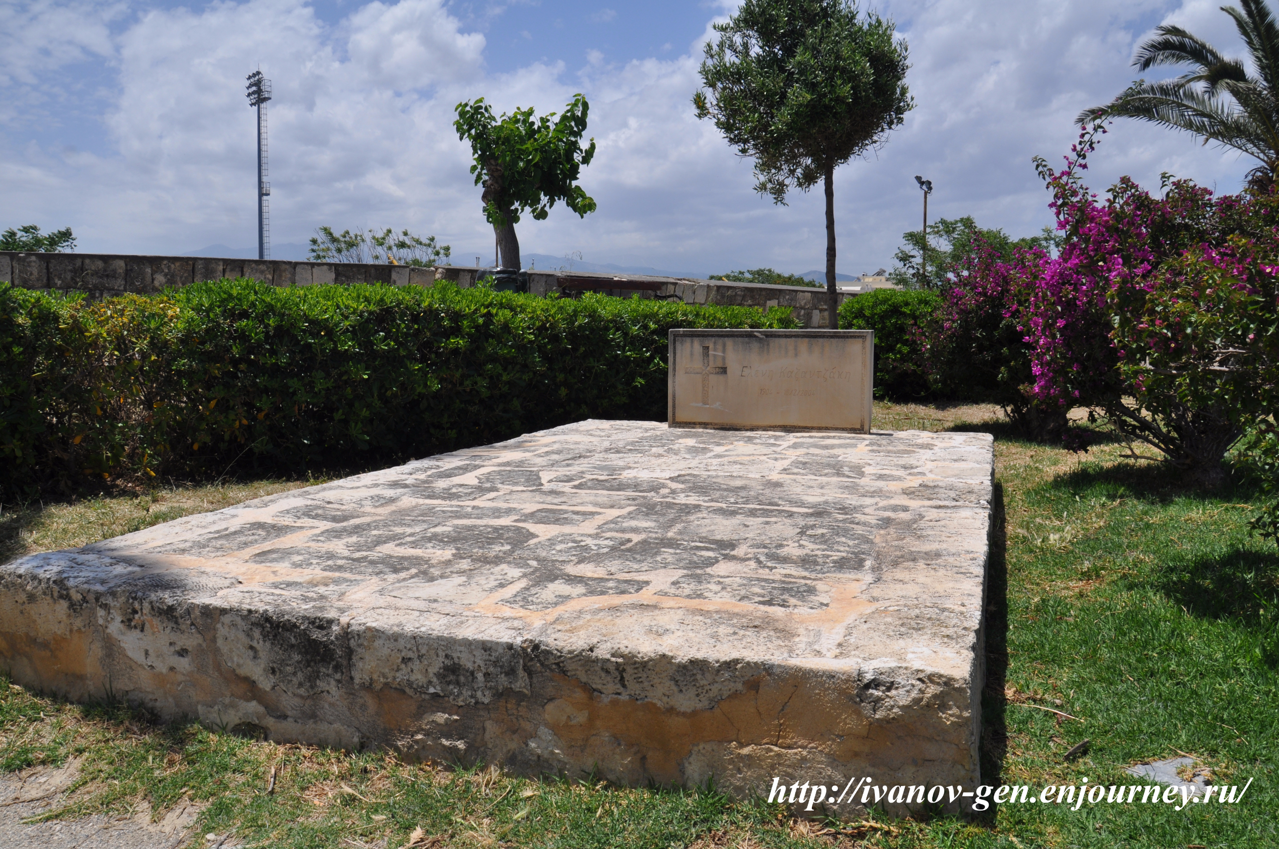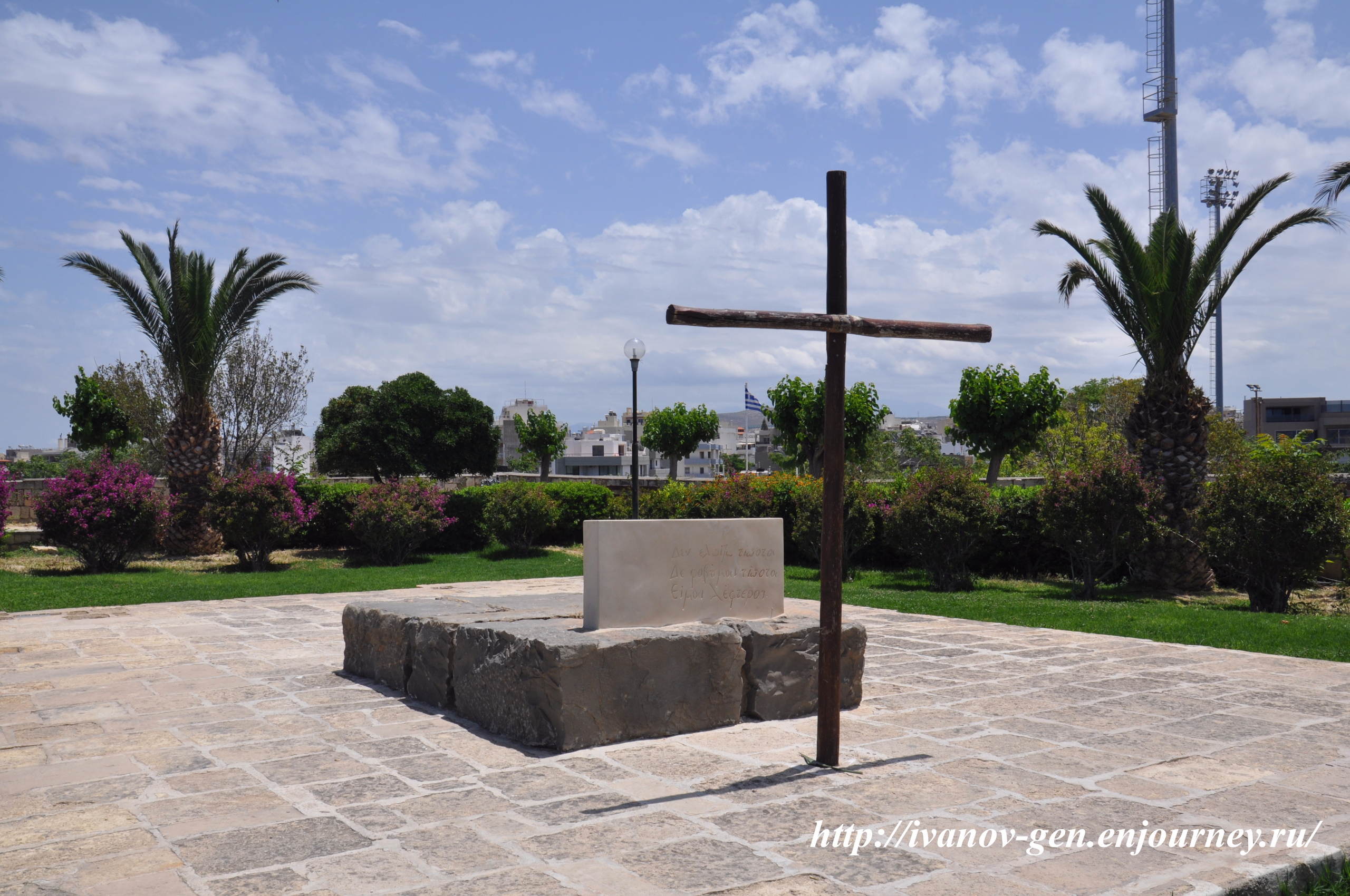 могила Никоса Казандзакиса у городской стены Ираклиона, поскольку православная церковь отказала в похоронах на кладбище; сейчас конечно город разросся и могила оказалась примерно в геометрическом центре города — не путать с историческим центром, в месте где находится могила писателя сейчас разбит небольшой сквер
