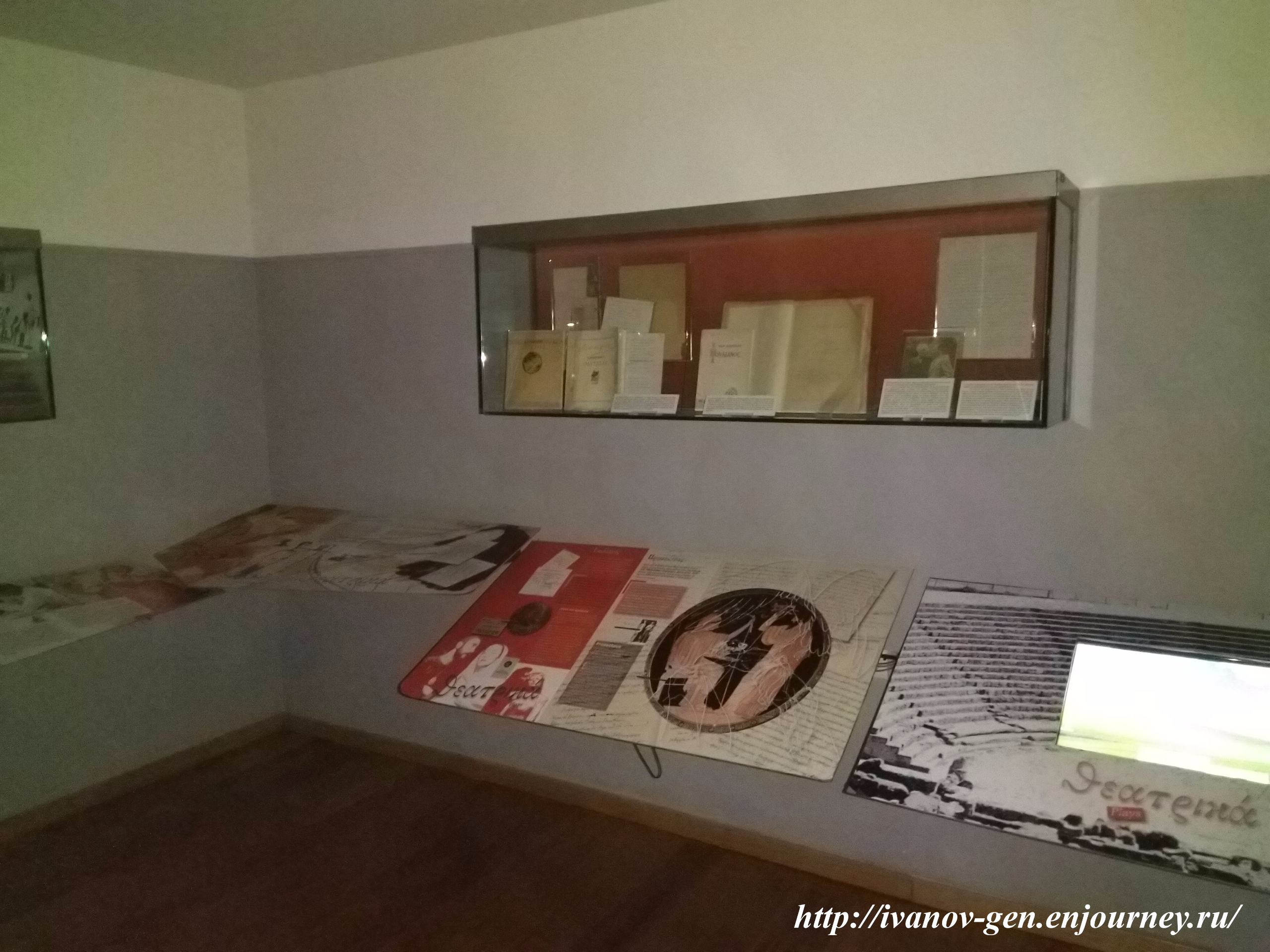 а в основном здании находится выставка книг и рукописей писателя