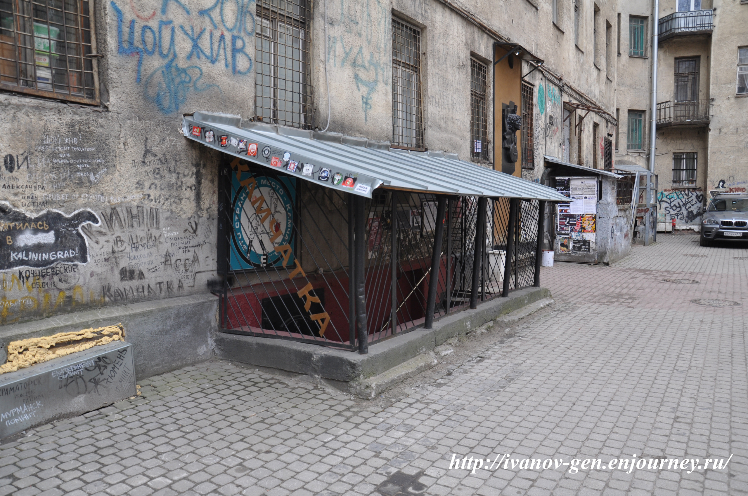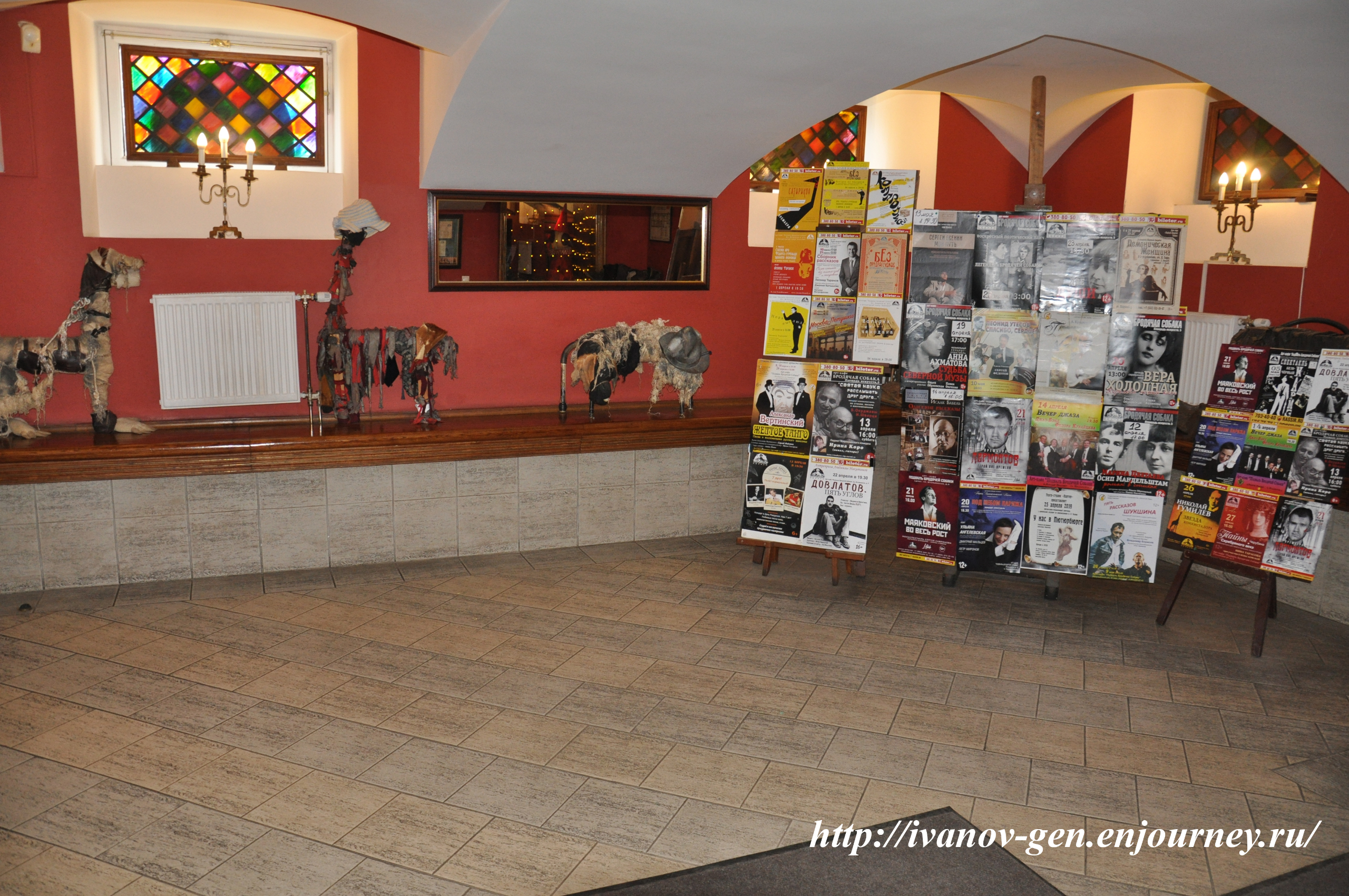 Интерьер «Подвала бродячей собаки». Вестибюль. Афиши концертов и выступлений в арт-кафе. Наши дни.