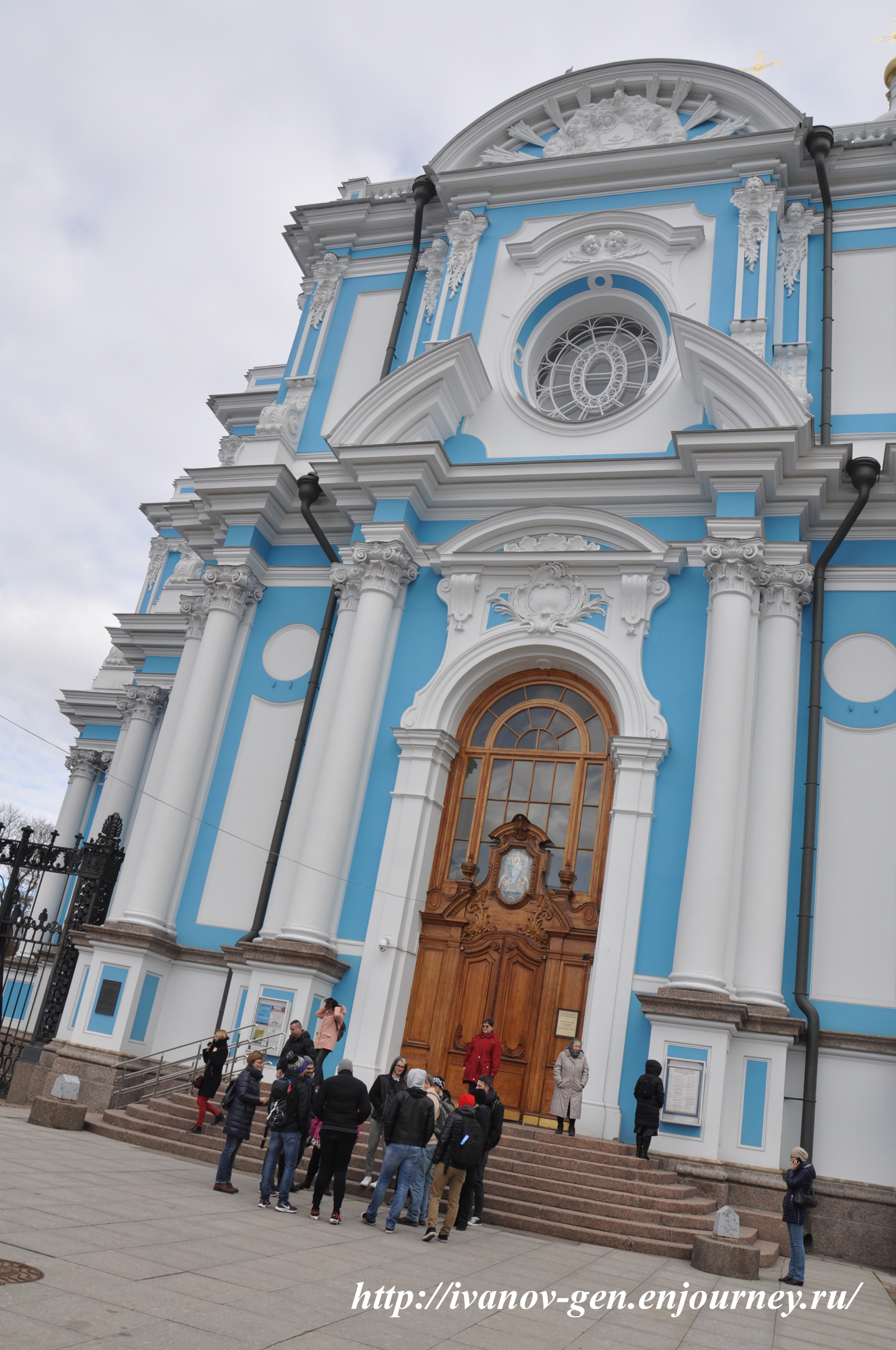 А здесь я попытался снять Смольный собор вблизи. Фишка в том, что вблизи купола собора не видны — собор как будто «складывается»