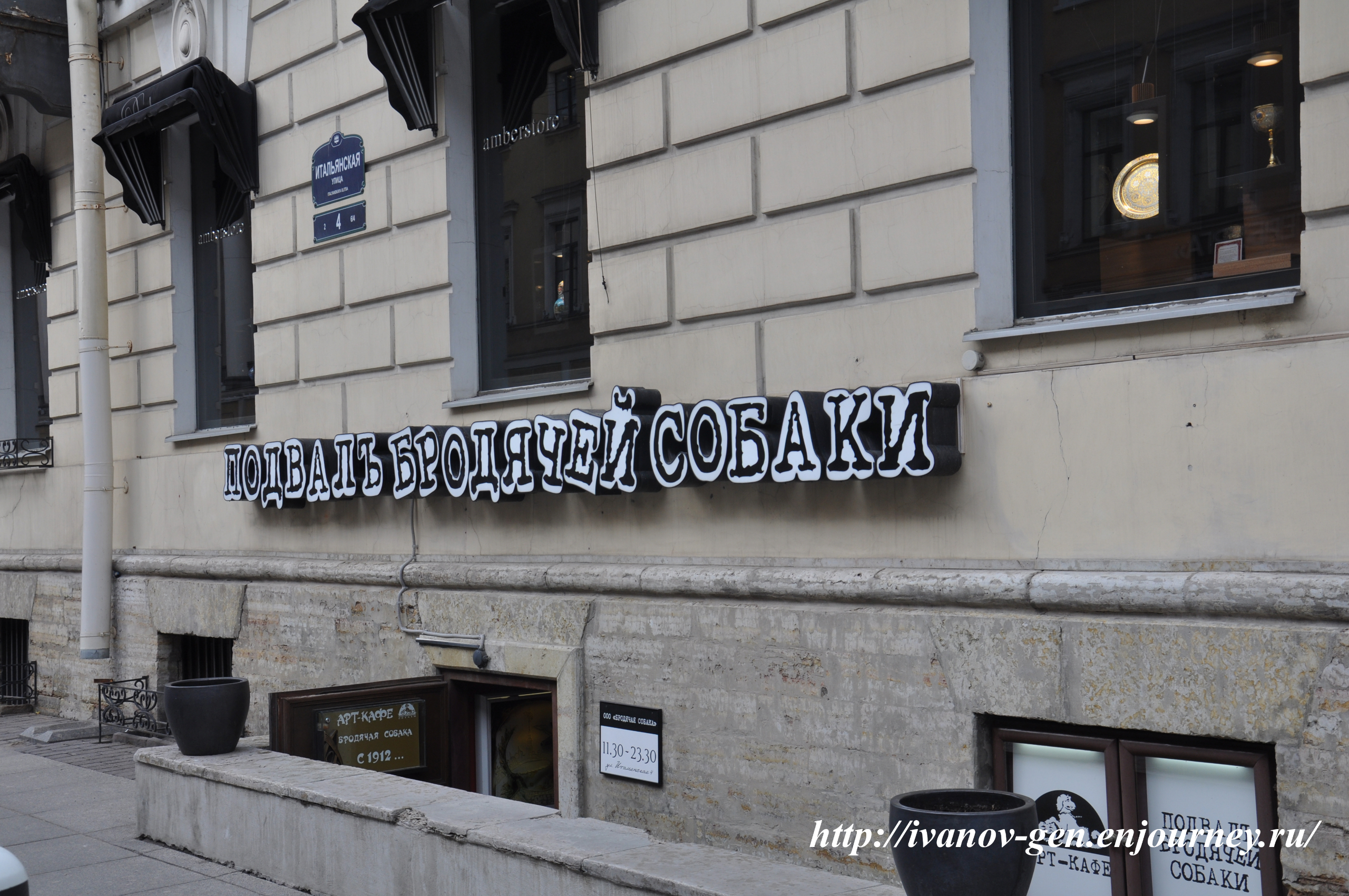 Арт-кафе «Подвал бродячей собаки» тоже на Итальянской улице, но в противоположном ее конце, в доме 4, Арт-кафе открылось по этому адресу еще в 1912 году