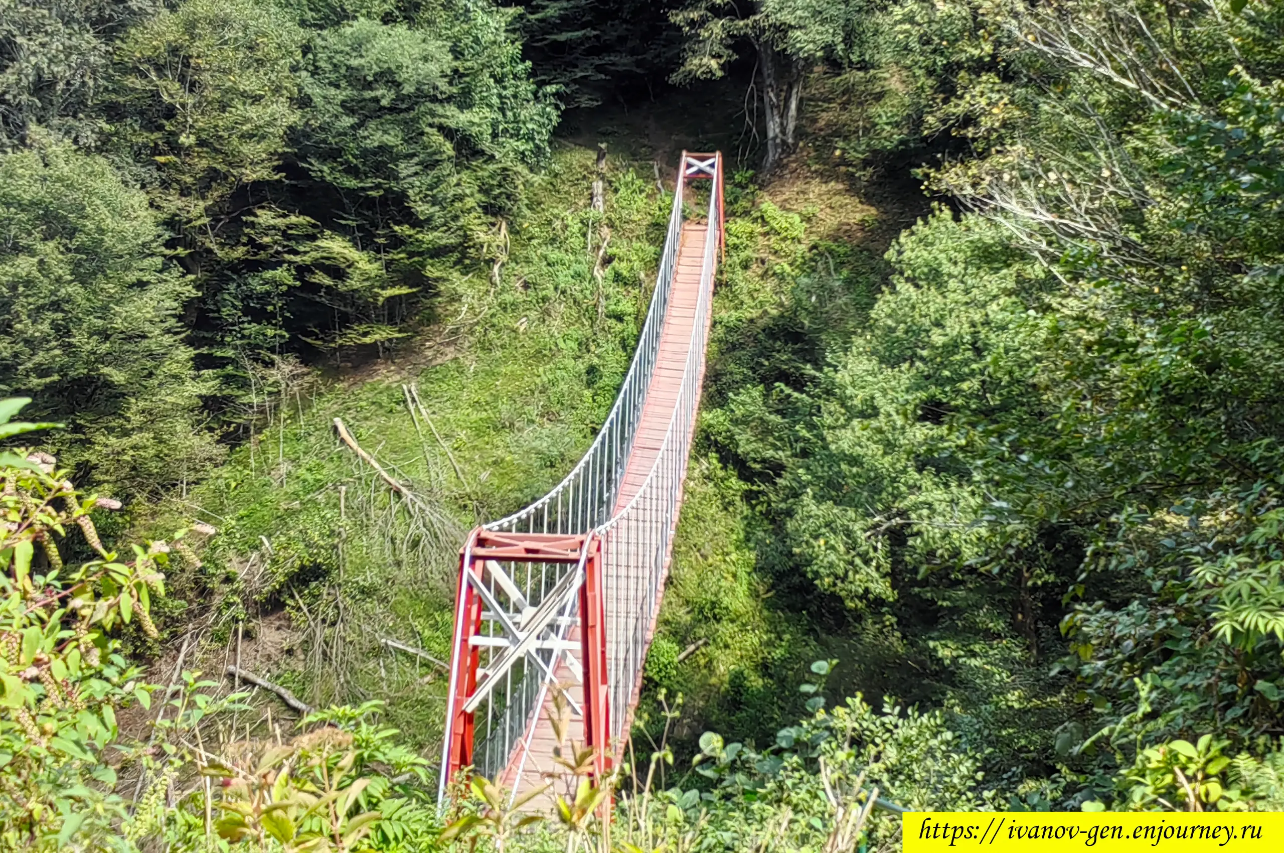 И рядом со смотровой — подвесной мост через реку Золотоносец