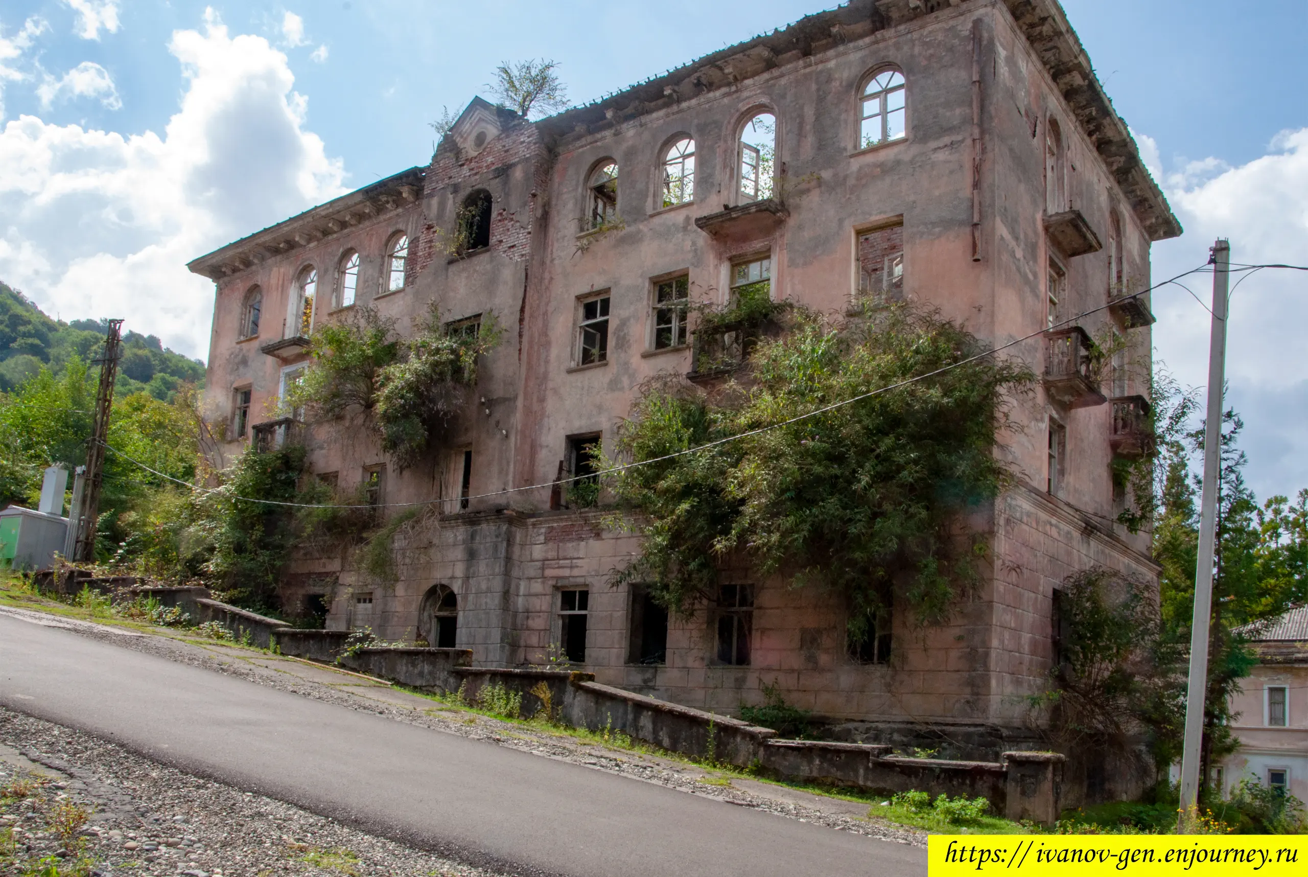 В настоящее время в посёлок ведёт частично бетонная, а частично плохая грунтовая дорога, В общем на полноприводном джипе проехать можно. Джип на фото — не тот, на котором сюда добрался я. Скорее всего он привёз необходимые товары последним оставшимся здесь жителям — невероятно, но факт: несмотря на страшные фото посёлок до сих пор обитаем.